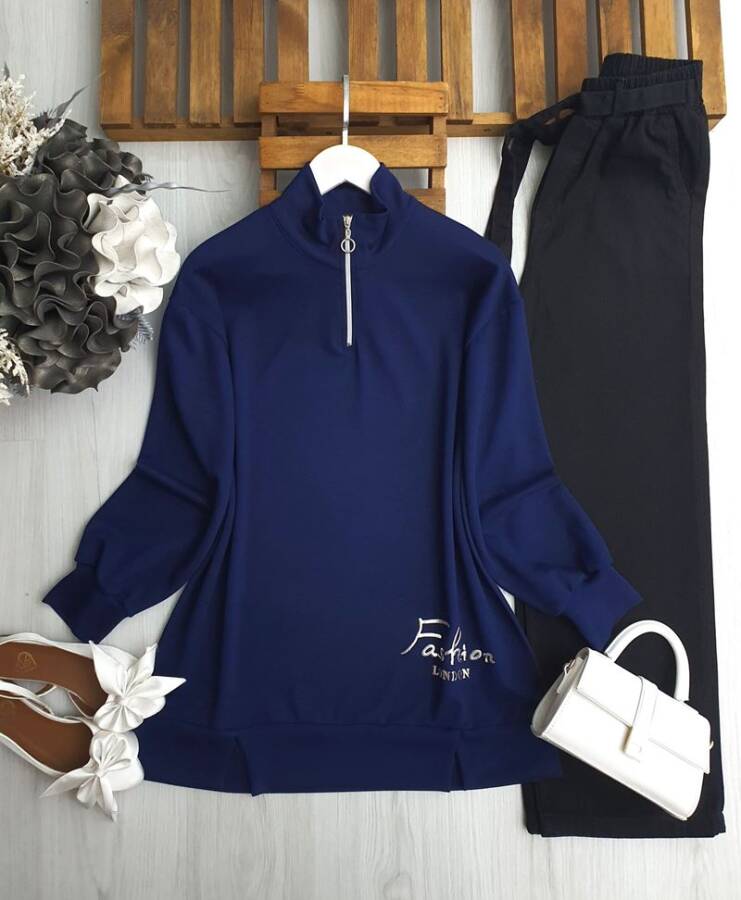 DULHE YARIM FERMUARLI ALTI BASKILI TUNİK 5630-12-LACİVERT