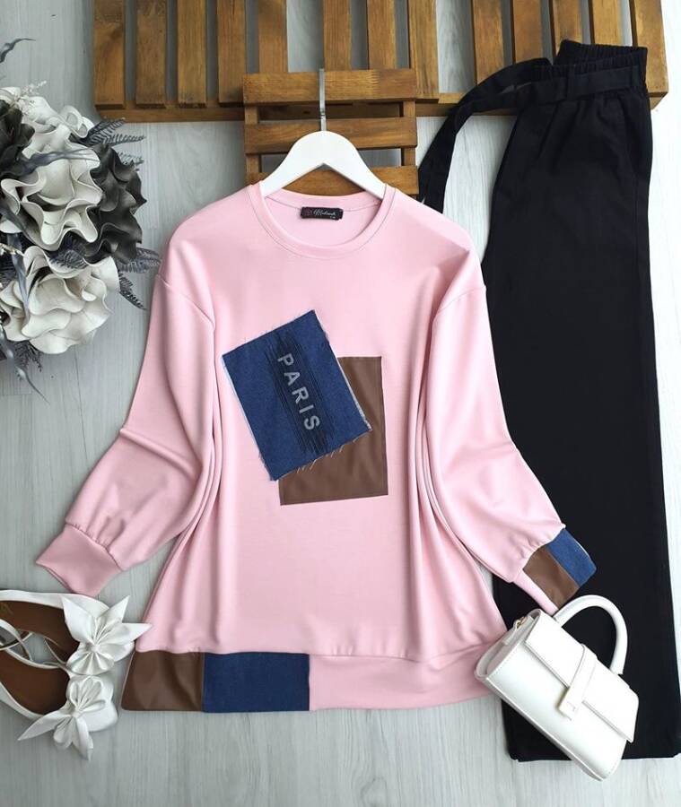 DUNVA DERİ VE KOT GARNİLİ TUNİK 5622-47-PEMBE