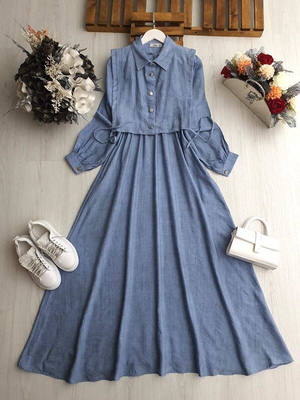 DUVA YAN BAĞCIKLI BOLEROLU ELBİSE İKİLİ TAKIM A8-3- 2335-10-MAVİ
