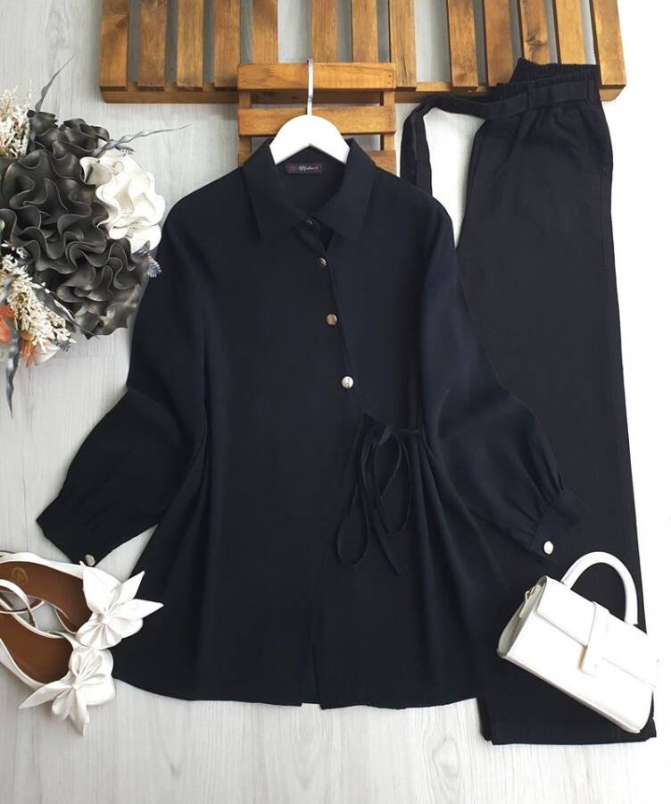 DUWF SİMETRİK DÜĞMELİ İÇ VE DIŞ YAN BAĞCIKLI GÖMLEK TUNİK B2-3-5610-01-SİYAH