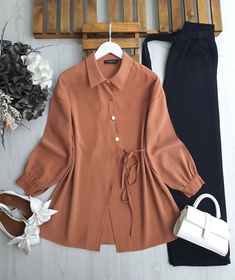 DUWF SİMETRİK DÜĞMELİ İÇ VE DIŞ YAN BAĞCIKLI GÖMLEK TUNİK B2-3-5610-06-KİREMİT