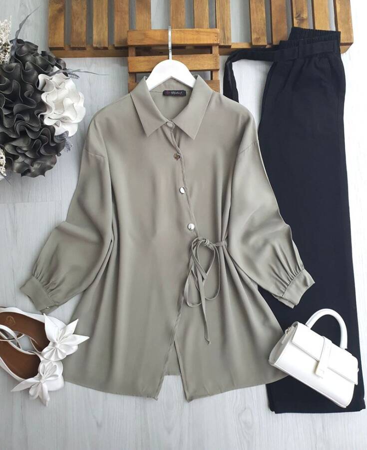 DUWF SİMETRİK DÜĞMELİ İÇ VE DIŞ YAN BAĞCIKLI GÖMLEK TUNİK B2-3-5610-07-YEŞİL