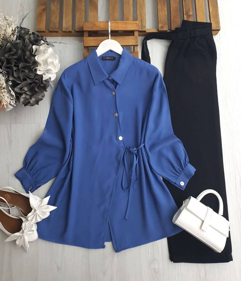 DUWF SİMETRİK DÜĞMELİ İÇ VE DIŞ YAN BAĞCIKLI GÖMLEK TUNİK B2-3-5610-10-MAVİ