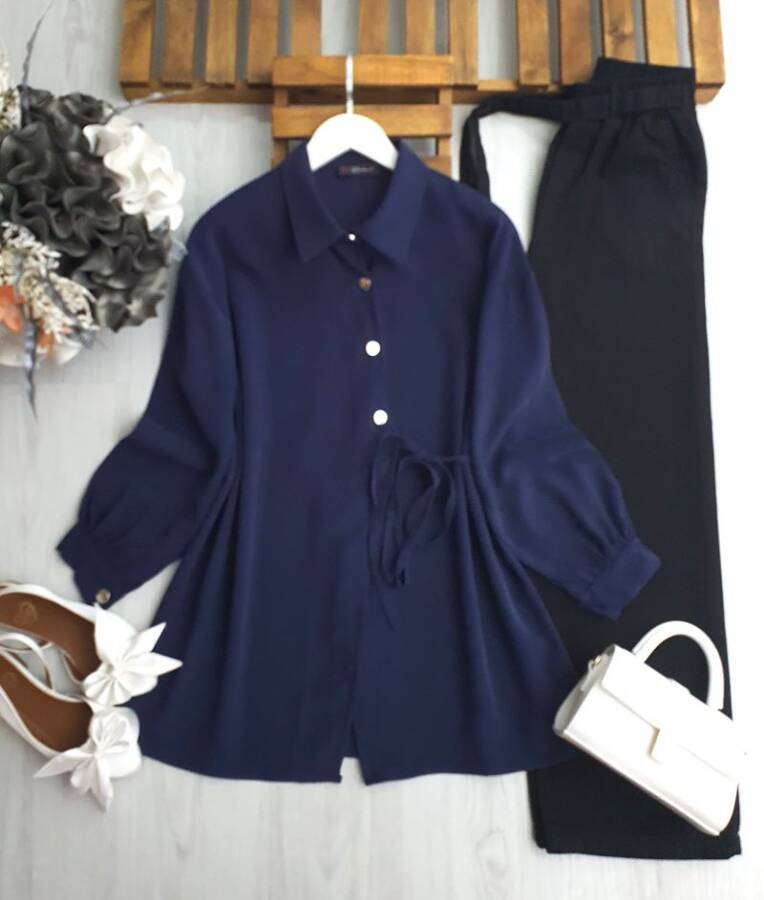 DUWF SİMETRİK DÜĞMELİ İÇ VE DIŞ YAN BAĞCIKLI GÖMLEK TUNİK B2--3-5610-12-LACİVERT