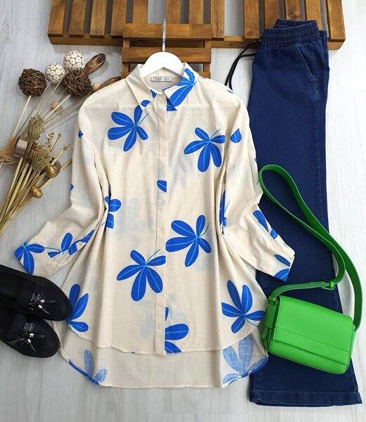DUYS DAL DESENLİ SALAŞ KETEN GÖMLEK B10-3-5326-14-SAKS