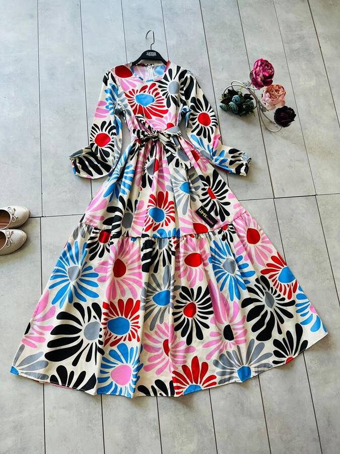 EKİNEZYA DESENLİ MEVLANA ELBİSE D4-2249-16-GÜL