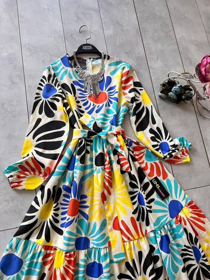 EKİNEZYA DESENLİ MEVLANA ELBİSE D4-2249-23-SARI