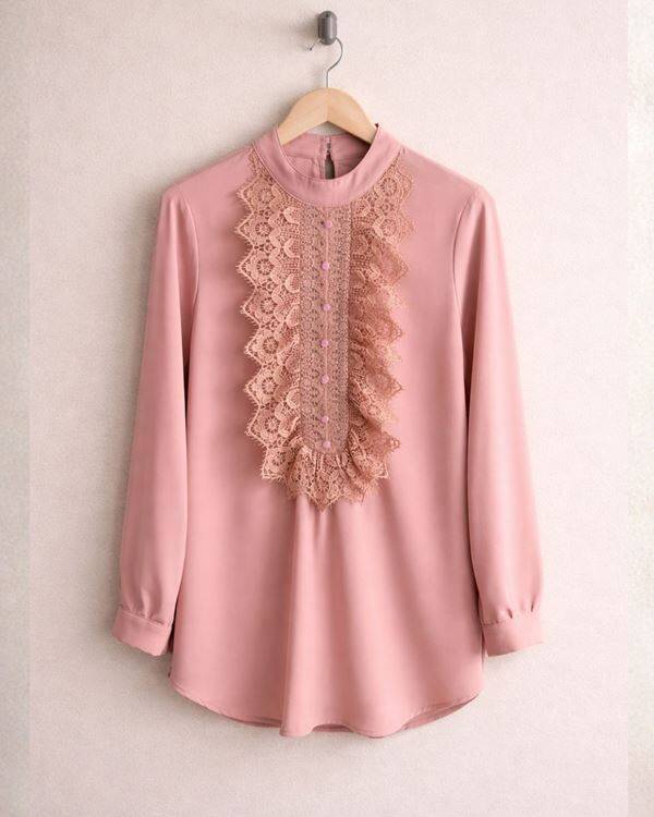ELCEJA ÖNÜ GÜPÜRLÜ GÖMLEK 23346-05-PUDRA