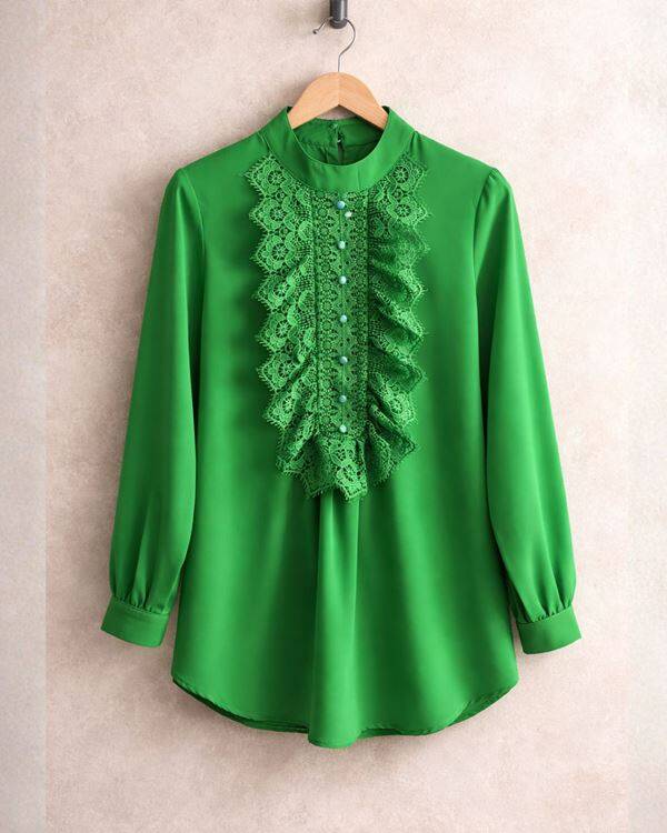 ELCEJA ÖNÜ GÜPÜRLÜ GÖMLEK 23346-07-YEŞİL