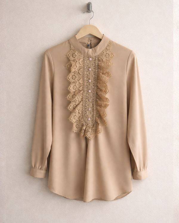 ELCEJA ÖNÜ GÜPÜRLÜ GÖMLEK 23346-34-BEJ