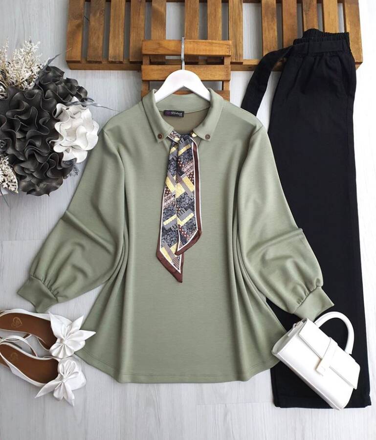 ELNA YAKA FULARLI SALAŞ TUNİK 5641-07-YEŞİL