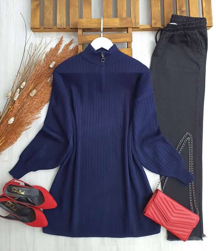 ELOW BALON KOL YARIM FERMUARLI TRİKO TUNİK B7-2-8111-12-LACİVERT