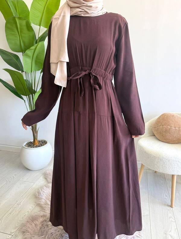 ELTAS BELİ BAĞCIKLI PİLELİ ELBİSE B5-1-2415-37-KAHVE