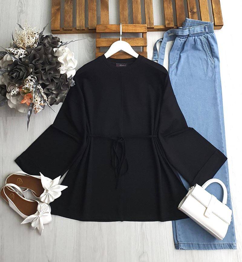 ENFA BELİ İPLİ KIVRIK KOL SALAŞ TUNİK B1-2-5614-01-SİYAH