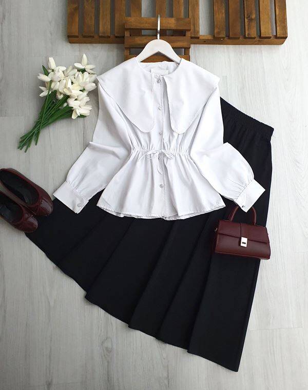 ESA BELİ LASTİKLİ VE BAĞCIKLI UZUN YAKA GÖMLEK 5699-20-BEYAZ