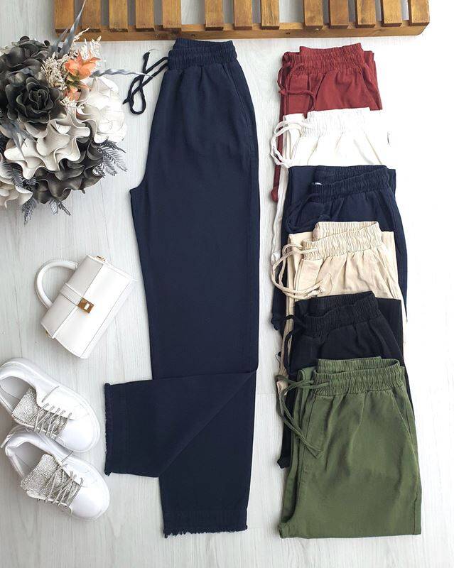 EVLE PAÇALARI PÜSKÜLLÜ BELİ LASTİKLİ BAĞCIKLI ORJİNAL KETEN PANTOLON A9-3-6065-12-LACİVERT