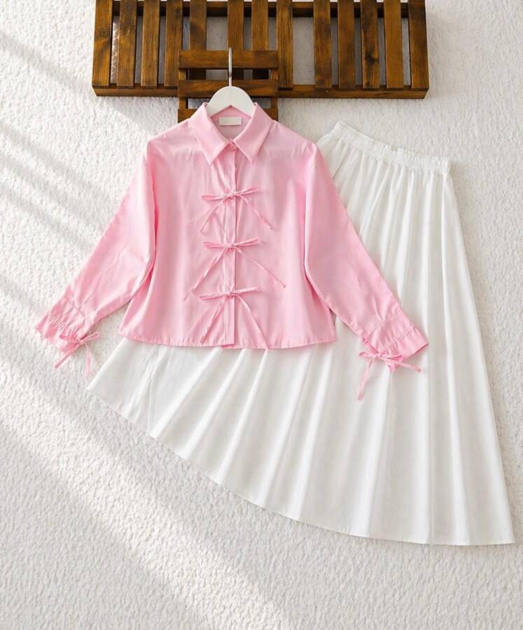 EWYİ KOL VE ÖN BAĞICIK DETAYLI GÖMLEK 5724-05-PUDRA