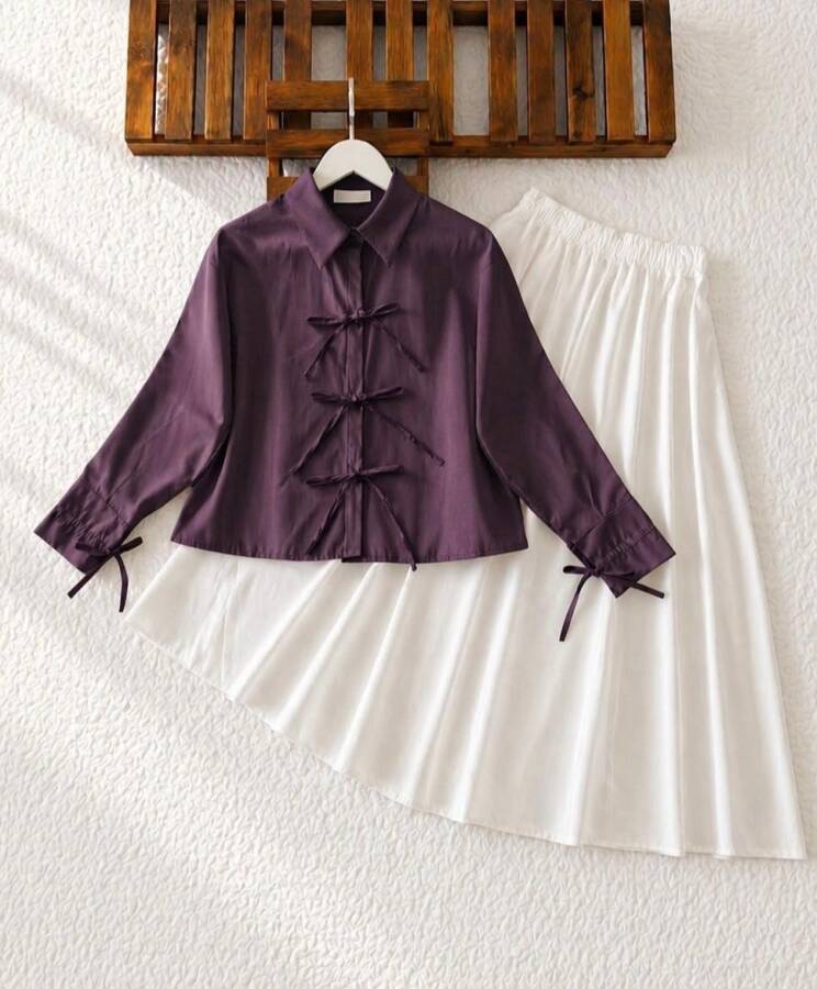 EWYİ KOL VE ÖN BAĞICIK DETAYLI GÖMLEK 5724-18-MÜRDÜM