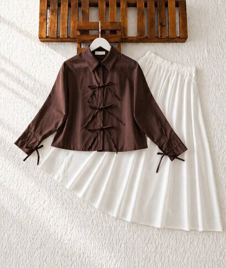 EWYİ KOL VE ÖN BAĞICIK DETAYLI GÖMLEK 5724-37-KAHVE