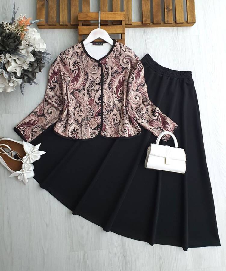 EYWA ETNİK DESENLİ ÖNÜ DÜĞMELİ ETEKLİ İKİLİ TAKIM 1668-01-SİYAH