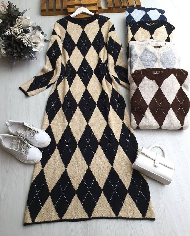 FANOL ELMAS DESEN KALIN DOKUMA TRİKO ELBİSE 8142-26-GRİ
