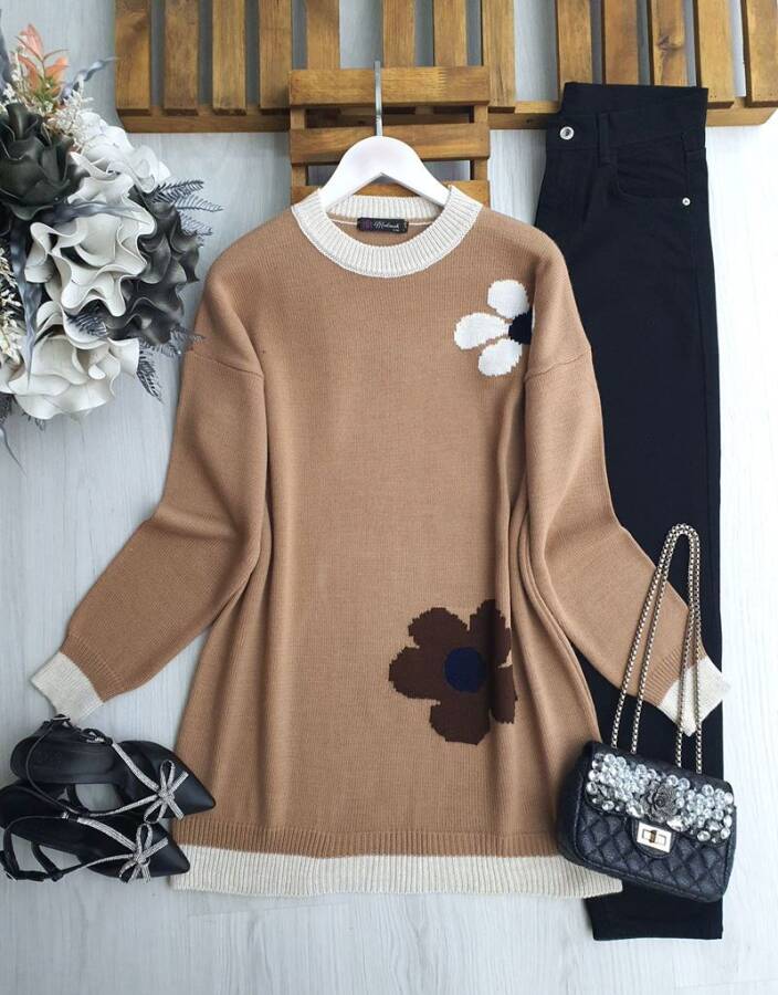 FAZG ÇİÇEK İŞLEMELİ TRİKO TUNİK B3-2-8173-48-BİSKÜVİ
