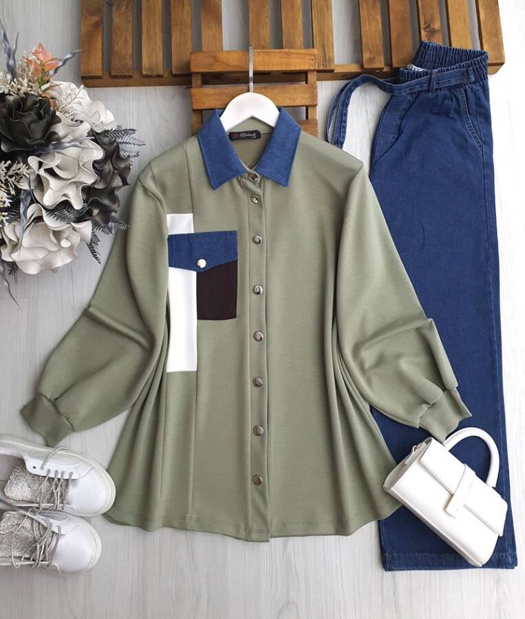 FAZLE KOT YAKA VE CEP KAPAK ÖNÜ DÜĞMELİ SALAŞ TUNİK 5632-09-HAKİ