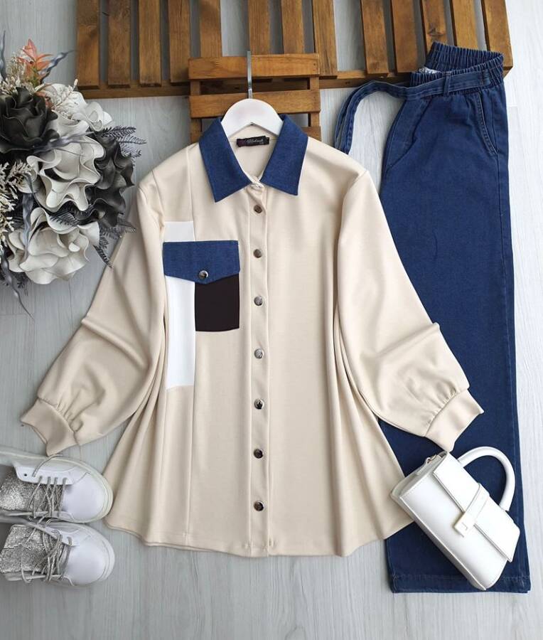 FAZLE KOT YAKA VE CEP KAPAK ÖNÜ DÜĞMELİ SALAŞ TUNİK 5632-34-BEJ