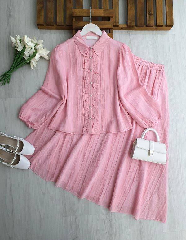 FEGA ÖNÜ FIRFIRLI ALT ÜST ASTARLI PETEK JAKAR ETEKLİ TAKIM 1759-05-PUDRA