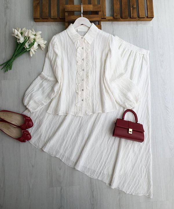 FEGA ÖNÜ FIRFIRLI ALT ÜST ASTARLI PETEK JAKAR ETEKLİ TAKIM 1759-20-BEYAZ