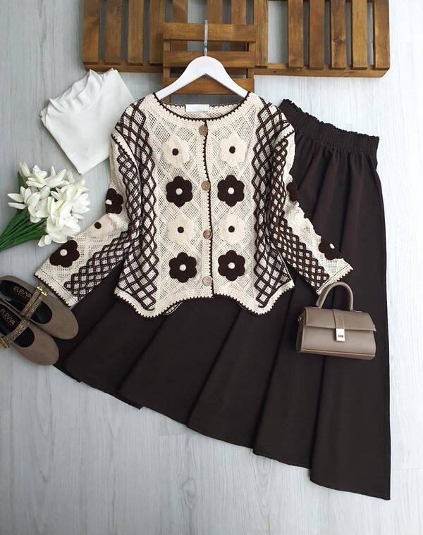 FEKD ÇİÇEK NAKIŞLI DOKUMA ÖRGÜ HIRKA 8203-37-KAHVE
