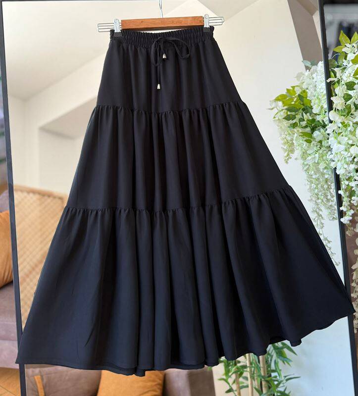 FELVA KAT KAT BELİ BAĞCIKLI VE LASTİKLİ CEPLİ ETEK C3-6070-01-SİYAH