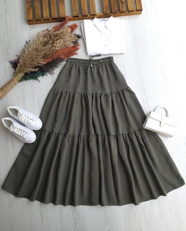 FELVA KAT KAT BELİ BAĞCIKLI VE LASTİKLİ CEPLİ ETEK 6070-09-HAKİ