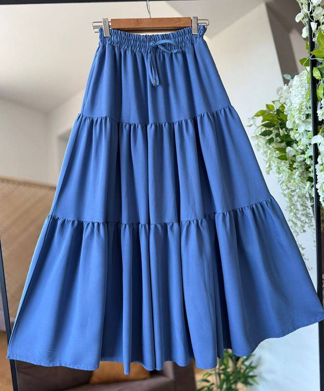FELVA KAT KAT BELİ BAĞCIKLI VE LASTİKLİ CEPLİ ETEK C3-6070-11-İNDİGO