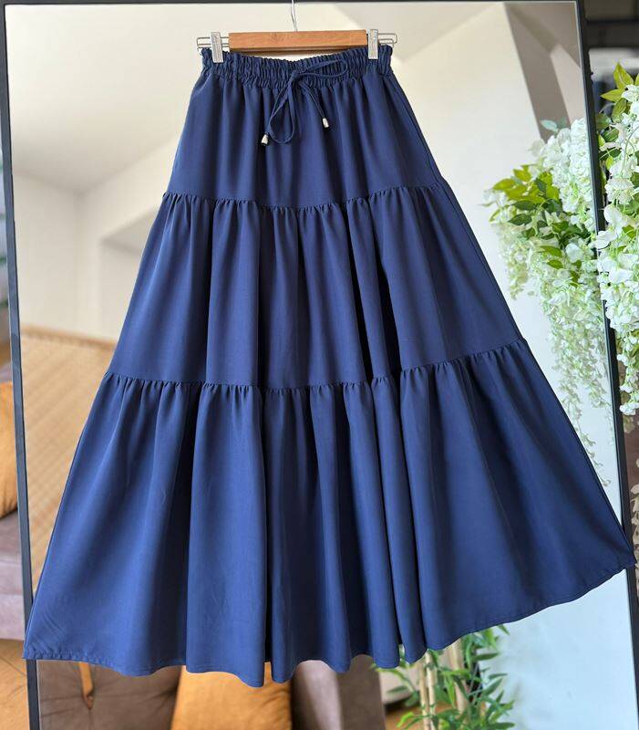 FELVA KAT KAT BELİ BAĞCIKLI VE LASTİKLİ CEPLİ ETEK C3-6070-12-LACİVERT