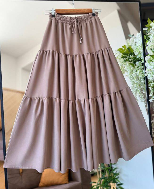 FELVA KAT KAT BELİ BAĞCIKLI VE LASTİKLİ CEPLİ ETEK C3-6070-25-VİZON