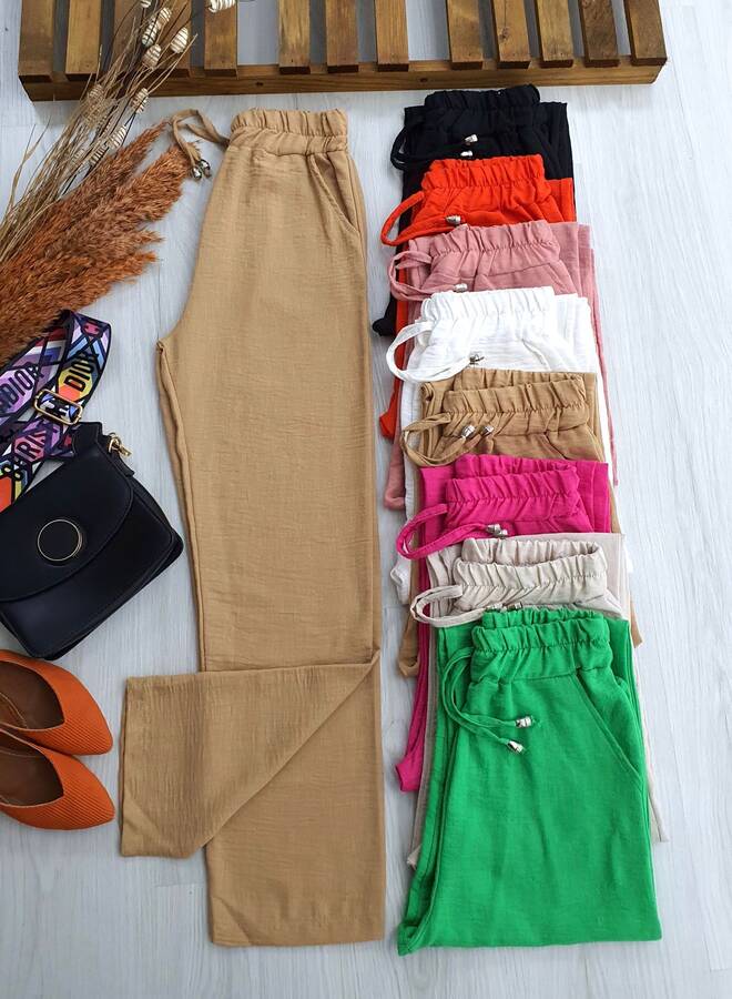 FEXA BAĞCIKLI CEPLİ KETEN PANTOLON C1-6036-48-BİSKÜVİ