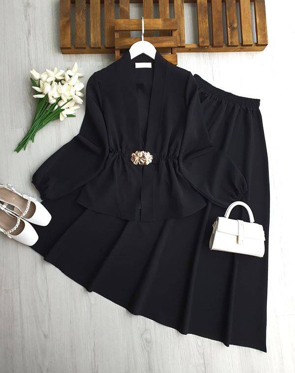FOLFA TOKALI BELİ LASTİKLİ ETEKLİ TAKIM 1752-01-SİYAH