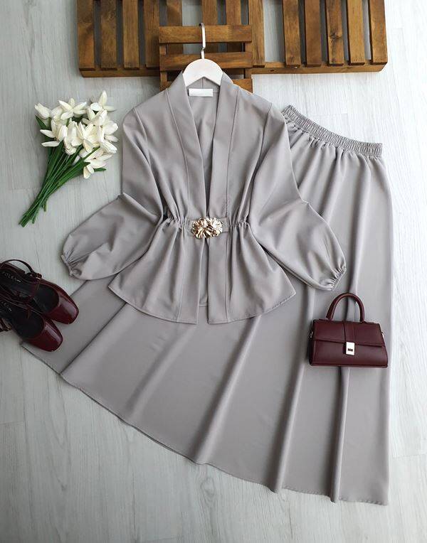 FOLFA TOKALI BELİ LASTİKLİ ETEKLİ TAKIM 1752-26-GRİ
