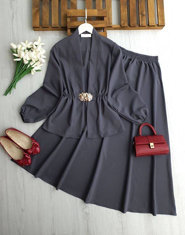 FOLFA TOKALI BELİ LASTİKLİ ETEKLİ TAKIM B9-5-1752-58-FÜME