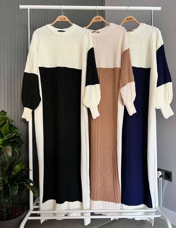 FOLV BALON KOL SAÇ ÖRGÜ TRİKO ELBİSE A6-2-8117-12-LACİVERT