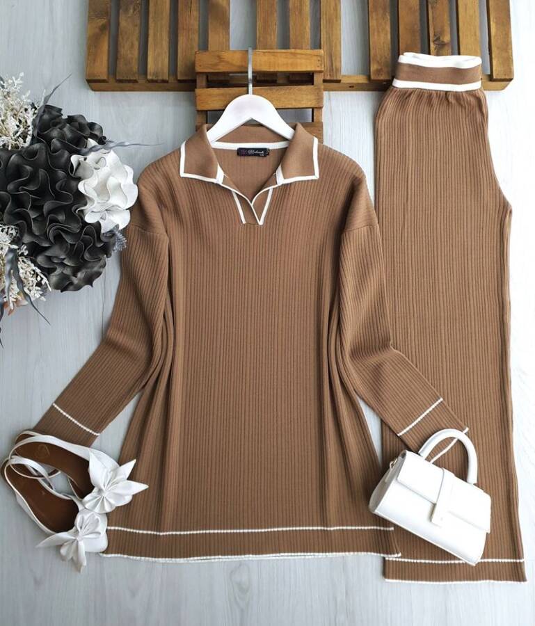 FONLE YAKALI İNCE BEYAZ GEÇİŞLİ DOKUMA TRİKO TAKIM A8-5-8146-04-BORDO
