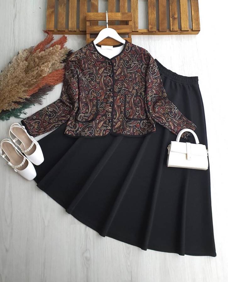 FORE ŞAL DESEN ÖNÜ DÜĞMELİ BİYELİ ETEKLİ TAKIM 1707-04-BORDO