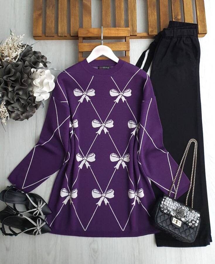 GAMEZ TAŞLI FİYONK DESENLİ TRİKO TUNİK 8151-02-MOR