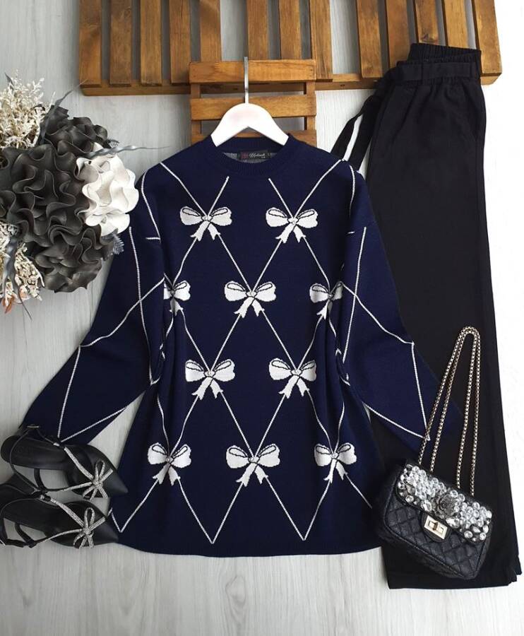 GAMEZ TAŞLI FİYONK DESENLİ TRİKO TUNİK 8151-12-LACİVERT