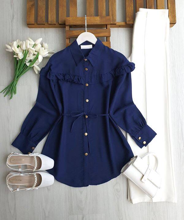 GEVEN OMUZ ÖN ARKA FIRFIRLI SALAŞ GÖMLEK TUNİK 5705-12-LACİVERT