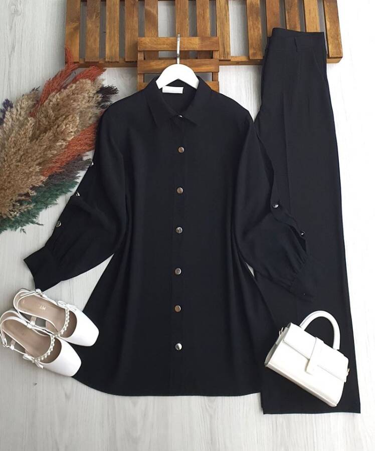 GİLNE KOL DÜĞME DETAYLI SALAŞ TUNİK B2-4-5673-01-SİYAH