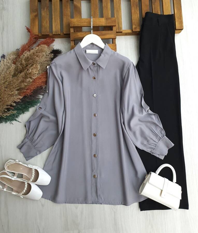 GİLNE KOL DÜĞME DETAYLI SALAŞ TUNİK B2-4-5673-26-GRİ