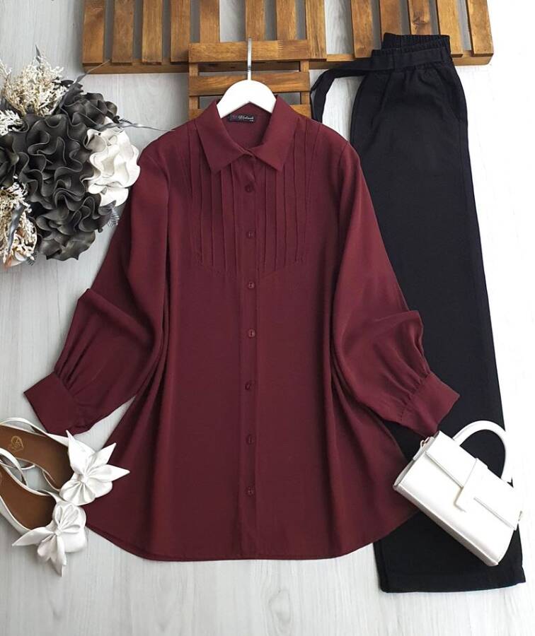 GOBE ÖNÜ NEVRULU GÖMLEK TUNİK B2-5-5609-04-BORDO