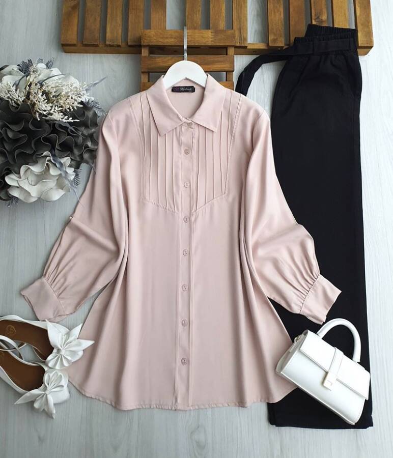 GOBE ÖNÜ NEVRULU GÖMLEK TUNİK B2-5-5609-05-PUDRA